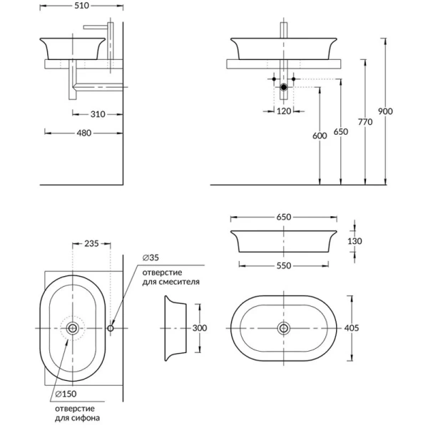 | Расположение | Накладные (на столешницу), Пристенные |