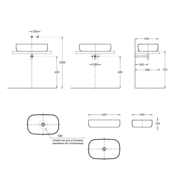 | Расположение | Накладные (на столешницу) |