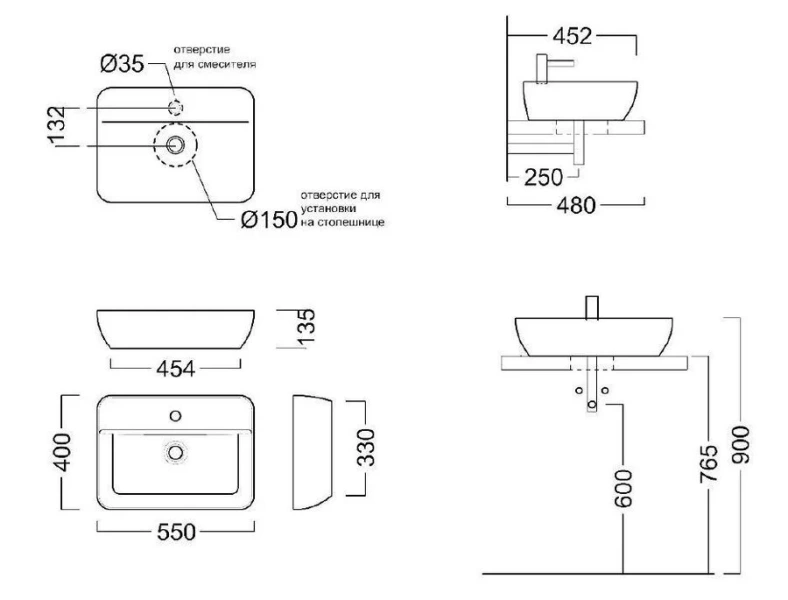 Раковина Kerama Marazzi Plaza 55 см накладная PLR.wb.55.1
