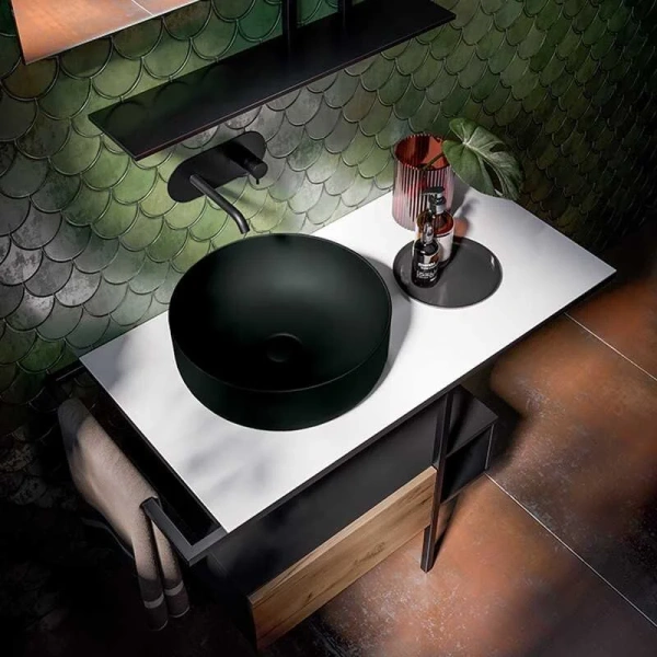 Чёрная матовая раковина Kerasan Nolita размером 40 см — идеальный выбор для вашей ванной комнаты. Без отверстий для смесителя и перелива, она легко устанавливается и подходит для любой ориентации. Матовая поверхность придаёт изделию элегантный вид, а вес в 8 кг обеспечивает надёжность конструкции.