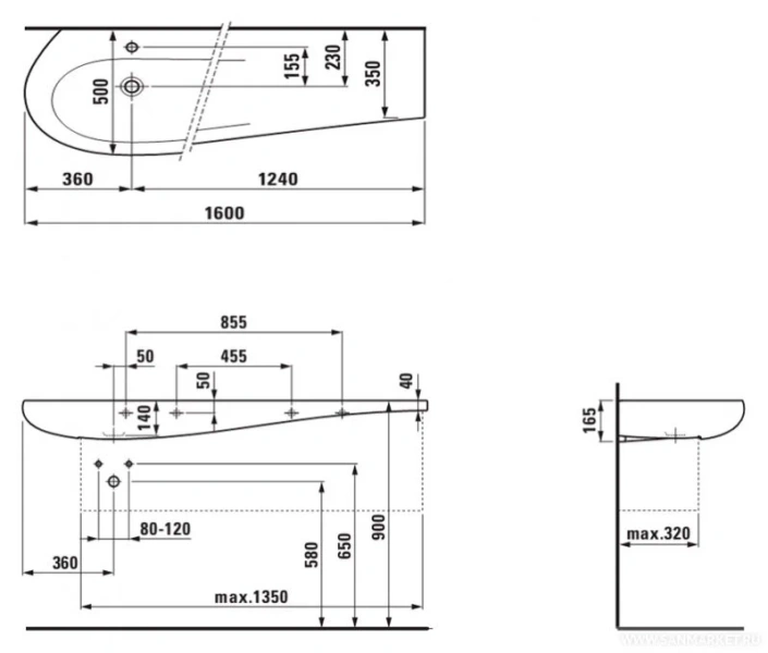 Раковина Laufen Alessi One 8.1497.1 имеет асимметричную вытянутую форму, отвечающую требованиям стилей минимализм, футуризм, хай-тек. Это накладная модель, которая монтируется в столешницу. Собственно чаша переходит в широкий бортик, на котором удобно хранить гигиенические принадлежности. Керамическое антигрязевое покрытие LCC не имеет пор и поэтому препятствует скоплению микробов и облегчает чистку раковины. Поставка возможна в двух вариантах: с отверстием под смеситель и без него.