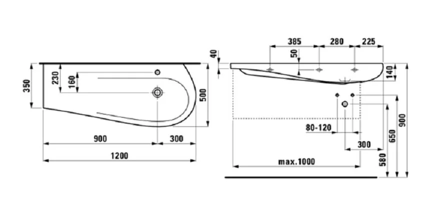 Раковина Laufen Ilbagnoalessi One 120 см белая с покрытием LCC 8.1497.4.400.104.1