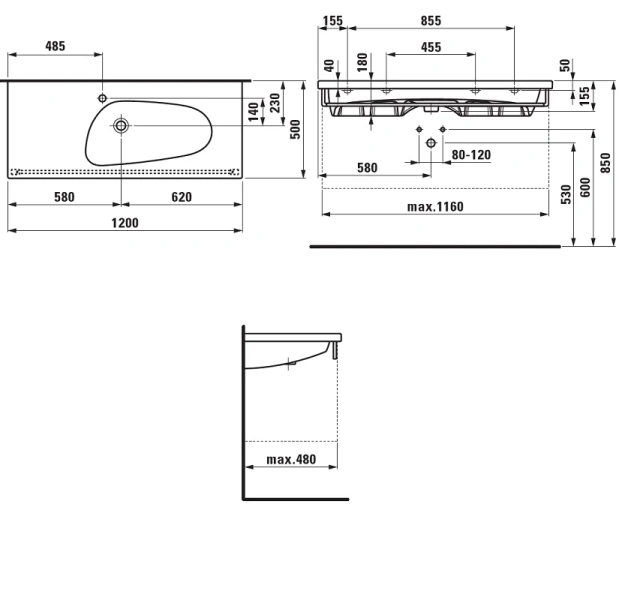 Большая прямоугольная раковина Laufen Palomba 8.1480.6 оснащается одним отверстием под смеситель, полотенцедержателем. Сбоку от чаши площадка, достаточная для размещения всех необходимых принадлежностей. Раковина белого цвета органично вписывается в интерьер любого цветового решения и стилевой направленности. Все использованные материалы качественные, экологически чистые, прочные.