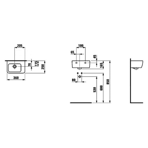 Раковина Laufen Pro 36 см без отверстия для смесителя 8.1695.5.000.109.1