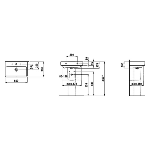 Раковина Laufen Pro S 55 см с 3 отверстиями для смесителя 8.1895.8.000.108.1