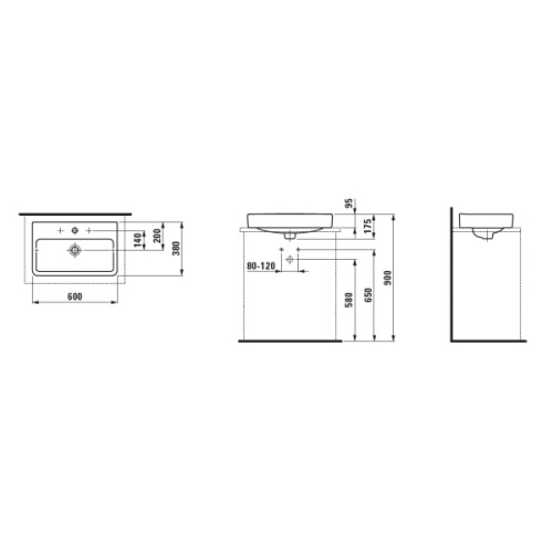 Раковина Laufen Pro S 60 см накладная, с 1 отверстием для смесителя 8.1295.3.000.104.1