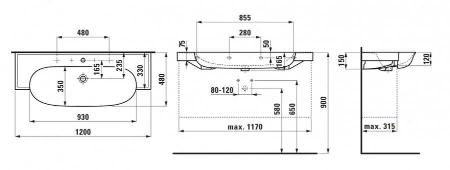Раковина Laufen The New Classic 120 см белая 8.1385.8.000.104.1