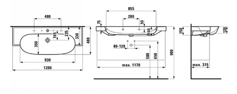 Раковина Laufen The New Classic 120 см белая 8.1385.8.757.107.1