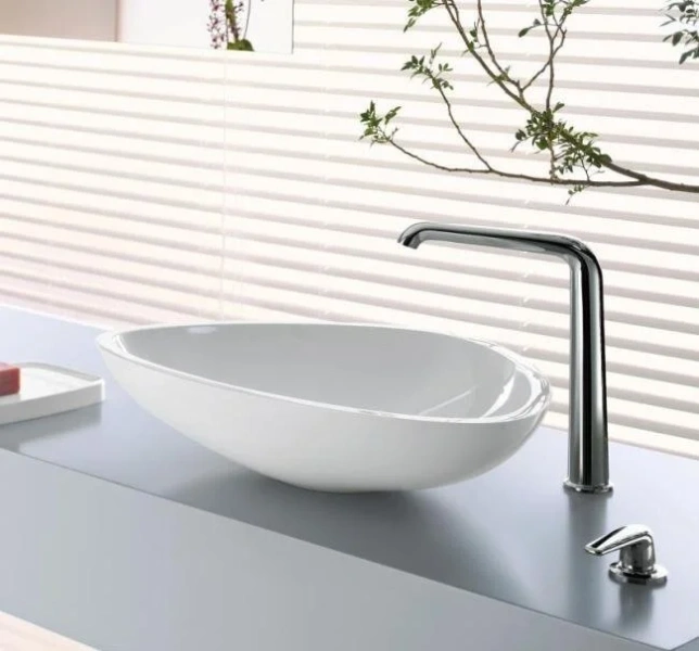 Раковина, 600 мм, Hansgrohe, Axor Massaud, 42305000 имеет форму треугольника с закругленным углами. Чаша предназначена для установки на горизонтальные поверхности, оснащена отверстием для слива. Модель выполнена из минерального литья с гелькоутом, поэтому поверхность гладкая, водоотталкивающая. Белый цвет позволяет сочетать с любыми столешницами.