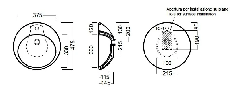 | Форма | Чаша, Круглая |