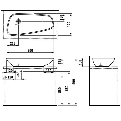 Раковина накладная Laufen Palomba 8.1680.1.000.112.1 90х42х16 см