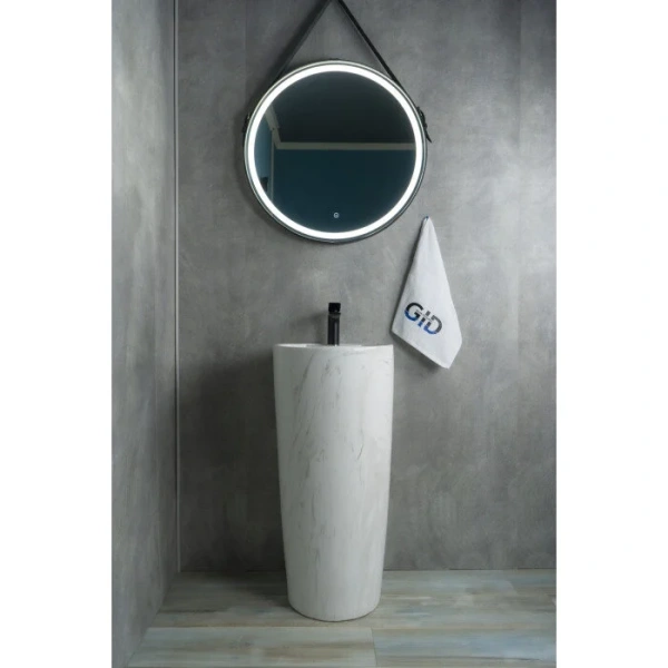 Раковина напольная GID Autonomo NB131WGSS — круглый моноблок из керамики диаметром 40 см с глянцевой поверхностью под камень. Оснащена одним отверстием под смеситель, расположенным по центру. Диаметр слива — 4,5 см, подходит для сифона 3,2 см. В комплект входят слив-перелив, донный клапан приобретается отдельно. Вес — 21 кг. Элегантное и практичное решение для современных ванных комнат с акцентом на природную эстетику.