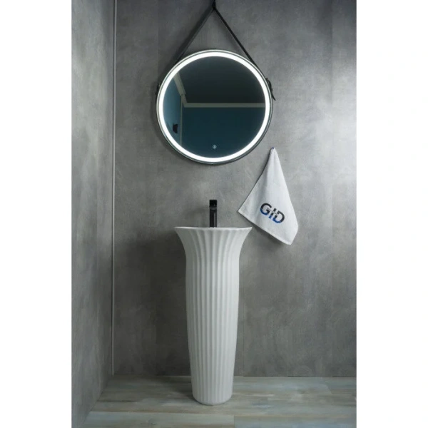 Раковина напольная GID Autonomo NB132 — круглая модель-моноблок диаметром 41 см, выполнена из прочной керамики с глянцевой белой поверхностью. Оснащена одним готовым отверстием под смеситель, расположенным по центру. Диаметр слива — 4,5 см, подходит для сифона 3,2 см. Донный клапан приобретается отдельно. Вес — 20 кг. Идеальный выбор для современной ванной комнаты, сочетает функциональность и лаконичный дизайн.