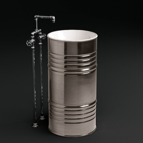 Раковина напольная Kerasan Artwork Barrel белый/платина 4742K44