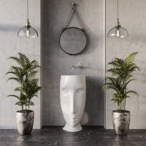 Напольная раковина Kerasan Artwork Moloco — идеальное решение для вашей ванной комнаты. Без отверстий для смесителя и перелива, она легко впишется в любой интерьер. Отверстие для слива расположено в стене, а диаметр сифона составляет 4.5 см. Благодаря своей форме в виде головы и глянцевой поверхности, эта раковина станет изюминкой вашего санузла. Вес изделия — 43 кг.