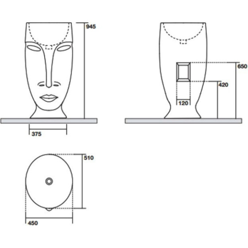 Напольная раковина Kerasan Artwork Moloco белого цвета с серебристыми акцентами — идеальное сочетание стиля и функциональности. Без отверстий для смесителя и перелива, она обеспечивает максимальную простоту установки. Отверстие для слива расположено в стене, а диаметр сифона составляет 4,5 см. Благодаря форме в виде головы и глянцевой поверхности, эта раковина станет ярким акцентом в вашем интерьере. Вес изделия — 43 кг.