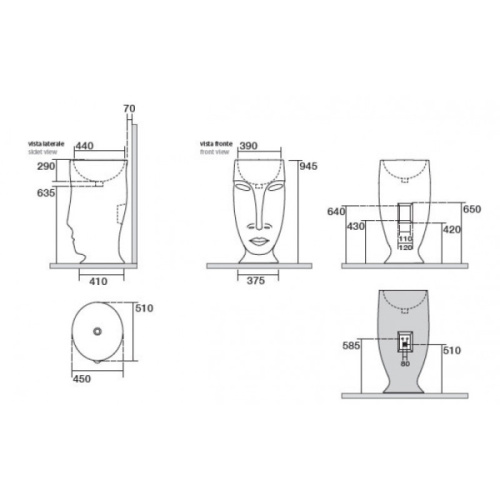 Напольная раковина Kerasan Artwork Moloco Burgundy Matt — это стильное и функциональное решение для вашей ванной комнаты. Без отверстий для смесителя и перелива, она идеально впишется в современный интерьер. Отверстие для слива расположено в стене, а диаметр сифона составляет 4,5 см. Благодаря форме в виде головы и матовой поверхности, эта раковина станет изюминкой вашего санузла. Вес изделия — 43 кг.