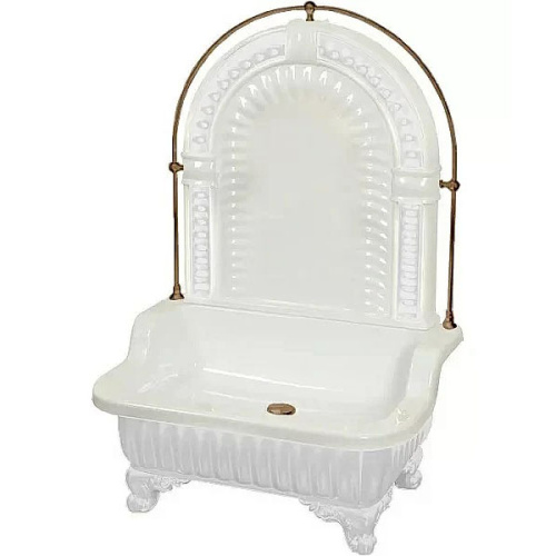 Напольная раковина Migliore Olivia Zampa с бронзовой галереей — это гармония классического дизайна и современного качества. Ножки в форме лап и изящная бронзовая галерея придают изделию неповторимый стиль, идеально подходящий для роскошного интерьера. Изготовленная из прочного стеклокомпозита с глянцевой поверхностью, раковина сочетает долговечность и эстетическую привлекательность. Пристенная панель облегчает установку, а внутренняя глубина 13 см обеспечивает комфорт. Отсутствие отверстий для смесителя и перелива подчеркивает элегантную простоту дизайна.