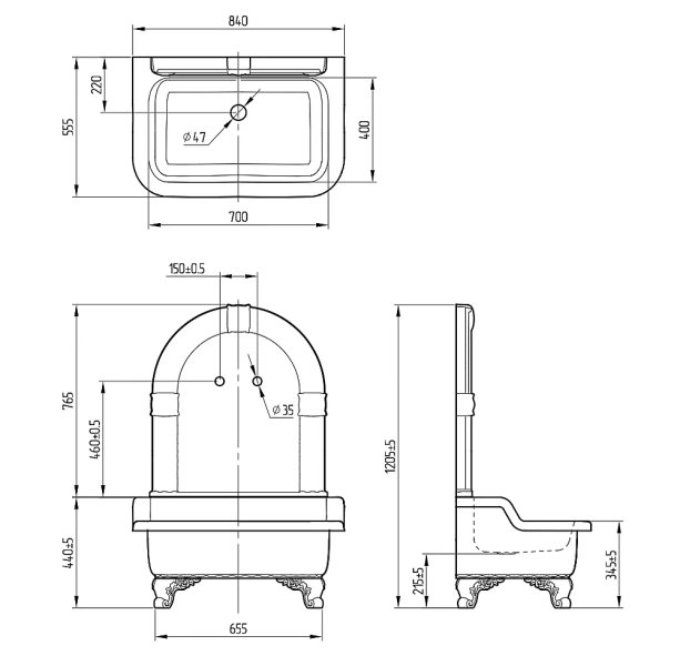 Напольная раковина Migliore Olivia Zampa с золотой галереей — это настоящее воплощение элегантности и роскоши. Изящные ножки в форме лап подчёркивают утончённый стиль изделия, создавая впечатляющий акцент в интерьере. Выполненная из прочного стеклокомпозита с глянцевой поверхностью, раковина не только долговечна, но и визуально привлекательна. Пристенная панель обеспечивает удобство установки, а внутренняя глубина 13 см делает использование комфортным. Отсутствие отверстий для смесителя и перелива придаёт дизайну минималистичную чистоту.