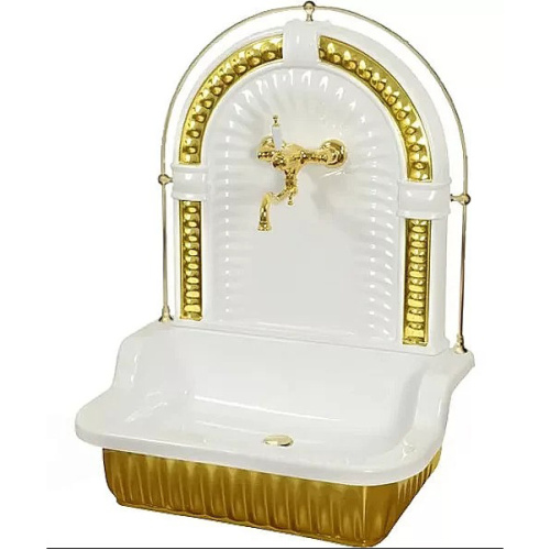 Раковина напольная Migliore Olivia в сочетании белого и золотого цветов — это идеальное решение для создания роскошного интерьера. Изготовленная из прочного стеклокомпозита, она обладает высокой прочностью и долговечностью. Гладкая глянцевая поверхность в сочетании с золотой галереей придает изделию изысканный вид. Пристенная панель с двумя готовыми отверстиями под смеситель на панели обеспечивает удобство установки. Внутренняя глубина 13 см и отсутствие отверстия для перелива дополняют современный и чистый дизайн.