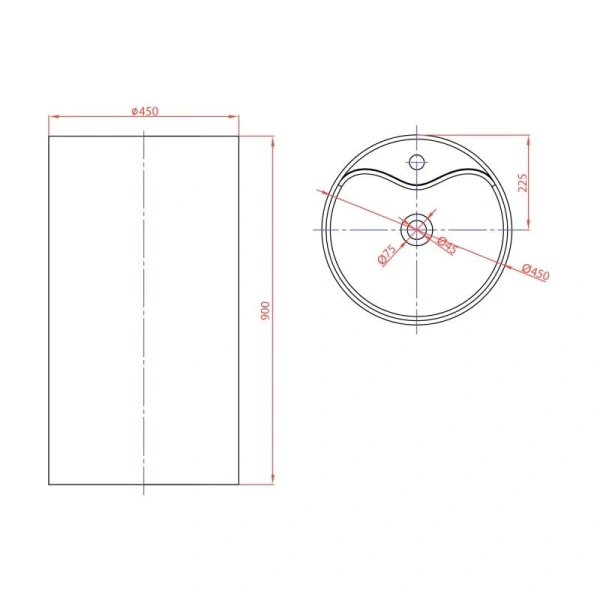 Раковина напольная Montebianco Pisa Rubinetto 11234 — изысканная круглая модель диаметром 45 см, выполненная из прочного материала с матовой поверхностью. Оснащена готовым отверстием для смесителя, расположенного по центру, что удобно для установки. Диаметр слива 4,5 см, рассчитан на сифон 3,2 см. В комплекте предусмотрен слив-перелив, донный клапан приобретается отдельно. Вес 64,9 кг обеспечивает надежность и устойчивость. Отличное решение для современного интерьера ванной комнаты.