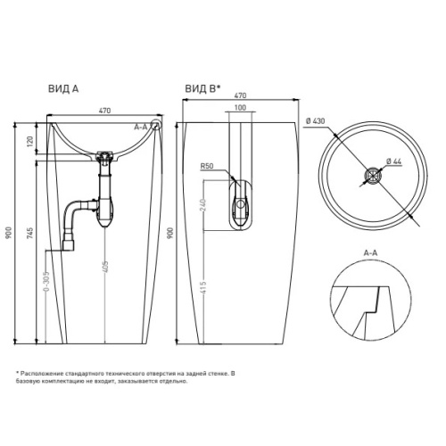 Раковина напольная Salini Armonia 03 покраска снаружи по RAL 130113SMN