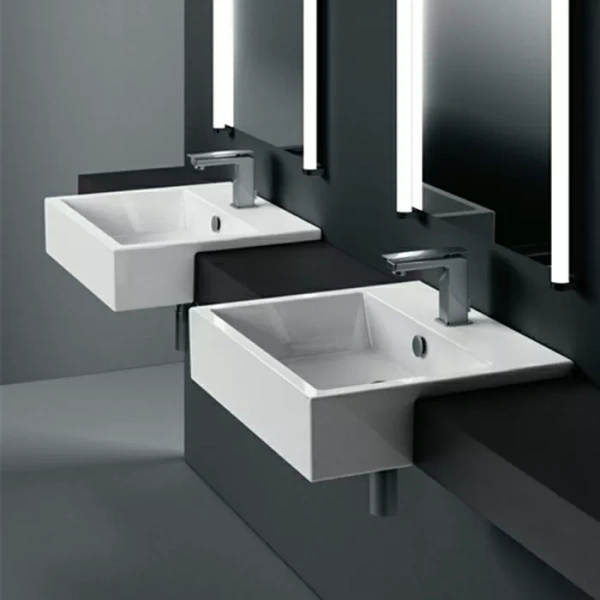 Раковина полувстраиваемая GSI Kube имеет прямоугольную форму и очень хорошо гармонирует с современной мебелью. Смеситель устанавливается на бортик чаши, для него есть отверстие. Раковина изготавливается из качественной и экологически чистой керамики, оснащается глянцевой поверхностью. Цвет белый.