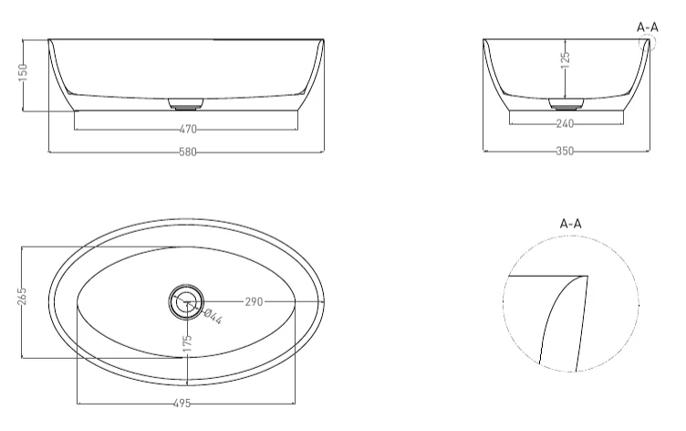 Раковина Salini Alda 01 58 см накладная, белый матовый 110621M