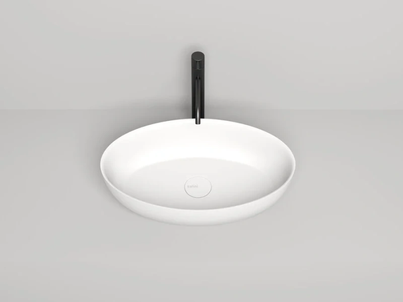 Раковина Salini Alda 01 58 см накладная из композитного материала S-Stone сочетает стиль и практичность. Материал S-Stone, включающий природные минералы и натуральные пигменты, обеспечивает долговечность и прочность. Вы можете выбрать любой из 216 оттенков каталога RAL Classic для покраски, а прокраска во всю глубину материала гарантирует стойкость цвета. Раковина имеет внутреннюю глубину 12.5 см и диаметр сливного отверстия 4.4 см. Отсутствие отверстий под смеситель и перелива предоставляет свободу в выборе сантехники. Донный клапан приобретается отдельно. Матовое покрытие завершает современный облик изделия.