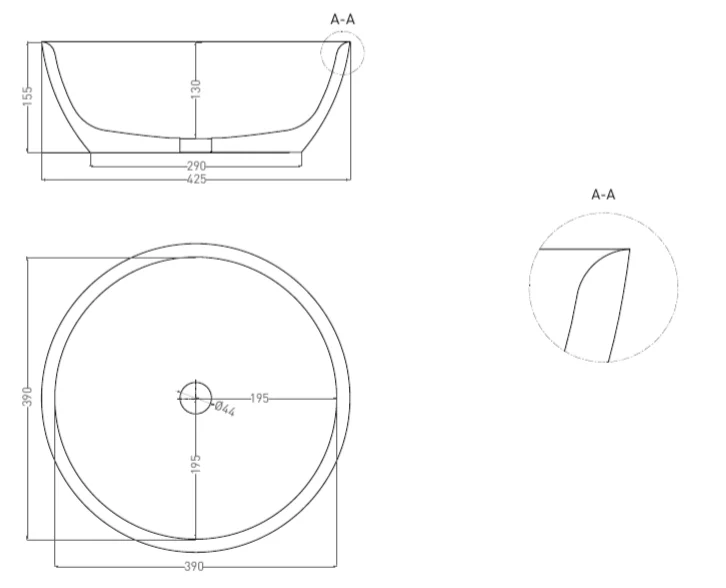 Раковина Salini Alda 02 42 см из современного композитного материала S-Stone сочетает элегантность и долговечность. Материал включает природные минералы и натуральные пигменты, что обеспечивает прочность и стойкость. Вы можете выбрать любой из 216 оттенков каталога RAL Classic для полной покраски, которая проникает во всю глубину материала. Раковина не имеет отверстий под смеситель и перелив, что дает свободу в выборе сантехники.