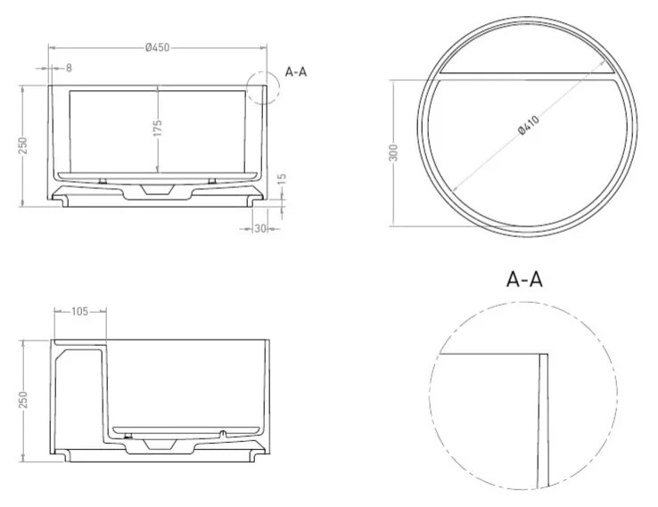 Раковина Salini Armonia Round Top 02 диаметром 45 см – это стильное и практичное решение для ванной. Изготовленная из композитного материала S-Stone, с природными минералами и пигментами, она обладает матовым покрытием и стенками толщиной 1.2–3 см. Раковина оснащена полочкой для хранения туалетных принадлежностей и не имеет отверстия под смеситель, но его можно заказать при покупке. Без отверстия перелива, с диаметром сливного отверстия 4.4 см и глубиной 17.5 см. Сифон и донный клапан приобретаются отдельно.