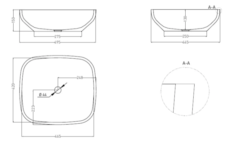 | Форма | Чаша, Прямоугольная |