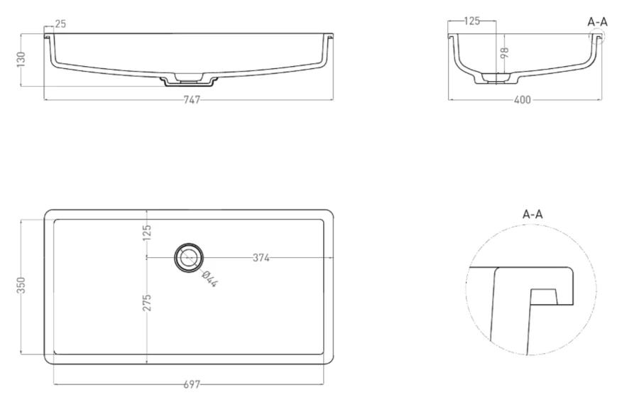 Раковина Salini Marea 10 1802210 75 см встраиваемая