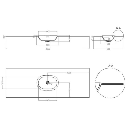 Раковина Salini Onda Edge Oval 200 см покраска по RAL полностью 14022041MN