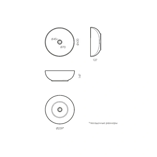 Круглая накладная раковина Sanita Luxe Art WB.CT/Art/40-N.Slim/WHT.G/S1 диаметром 40 см выполнена из высококачественного фарфора с глянцевым покрытием для лёгкого ухода. Модель не имеет отверстий под смеситель, что позволяет использовать настенные или выносные варианты. Диаметр слива – 4,5 см, подходит для сифона Ø 3,2 см. Донный клапан приобретается отдельно. Без антибактериального покрытия. Вес – 8,23 кг. Идеальна для бытовых ванных комнат.