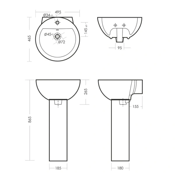 Раковина Sanita Luxe Art WB.PD/Art/50-C – элегантный фарфоровый умывальник шириной 50 см с глянцевым покрытием, придающим глубину цвета и облегчающим уход. Оснащена одним центральным отверстием под смеситель и комплектным слив-переливом с хромированным кольцом. Диаметр сливного отверстия 4,5 см, подходит для сифона Ø 3,2 см. Донный клапан приобретается отдельно. Идеальна для бытового применения в современных интерьерах.