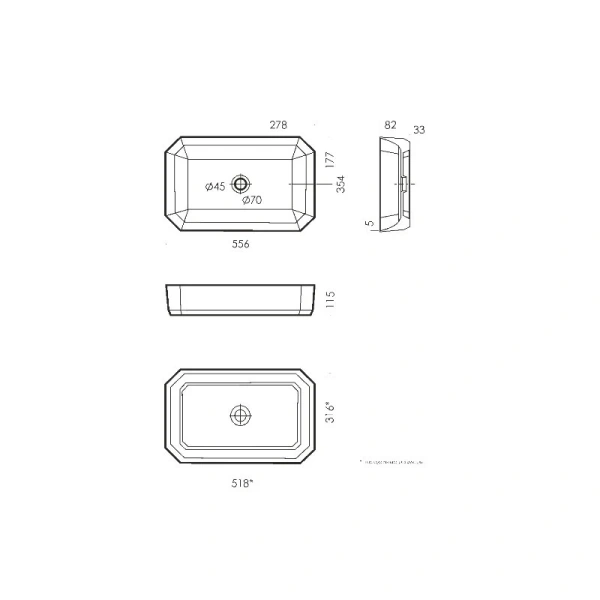 Накладная раковина Sanita Luxe Line WB.CT/Line/55-N/WHT.G/S1 шириной 55 см выполнена из фарфора с гладкой глянцевой поверхностью, которая устойчива к влаге и легко очищается. Модель без отверстий под смеситель позволяет установить настенный смеситель любой конструкции. Диаметр сливного отверстия – 4,5 см (для сифона Ø 3,2 см). Донный клапан приобретается отдельно. Вес изделия – 10,23 кг. Идеально подходит для бытового использования.