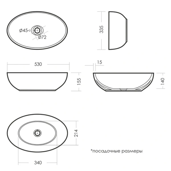 | Расположение | Накладные (на столешницу) |