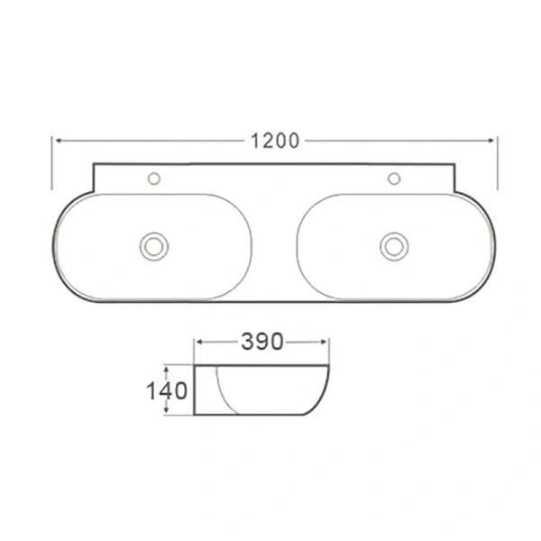 Раковина SantiLine SL-2113 — двойная керамическая модель длиной 120 см с глянцевой белой поверхностью и антибактериальным покрытием. Оснащена двумя центральными отверстиями под смесители и двумя сливами диаметром 4,5 см, рассчитанными на сифоны того же размера. В комплект входит система слив-перелив, донные клапаны приобретаются отдельно. Идеально подходит для семейного использования в ванной комнате.