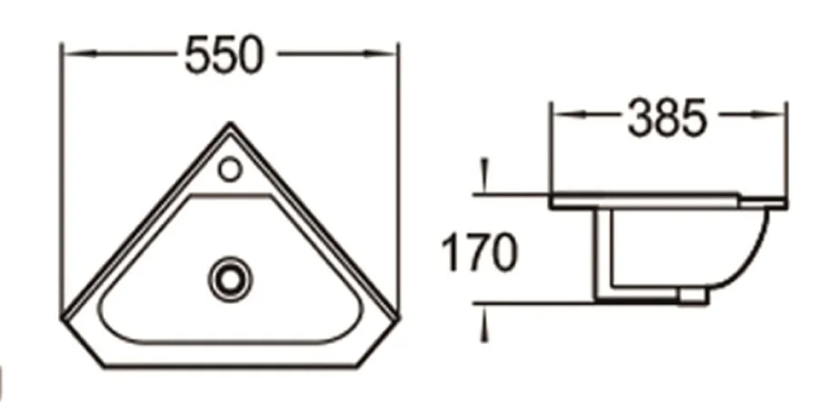 Угловая раковина SantiLine SL-2020 шириной 55 см — отличное решение для экономии пространства в ванной. Керамическая модель с глянцевой белой поверхностью легко очищается и устойчива к загрязнениям. Смеситель устанавливается по центру, предусмотрено одно готовое отверстие. Оснащена сливом-переливом, имеет антибактериальное покрытие. Диаметр слива — 4,5 см, подходит для сифона 3,2 см. Донный клапан приобретается отдельно. Предназначена для бытового применения.