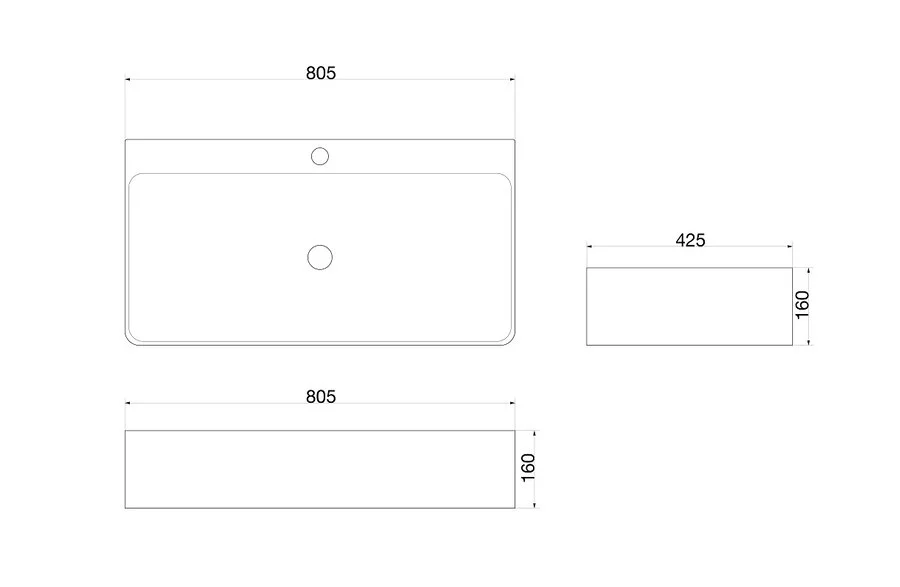 Раковина SantiLine SL-1080 — стильная прямоугольная чаша длиной 80 см, выполненная из белой керамики с глянцевой поверхностью. Оборудована центральным отверстием под смеситель и подходит для бытового использования. Антибактериальное покрытие обеспечивает чистоту и гигиеничность. Диаметр слива — 4,5 см, для сифона 3,2 см. Донный клапан приобретается отдельно. Идеальное сочетание эстетики и практичности для современной ванной.