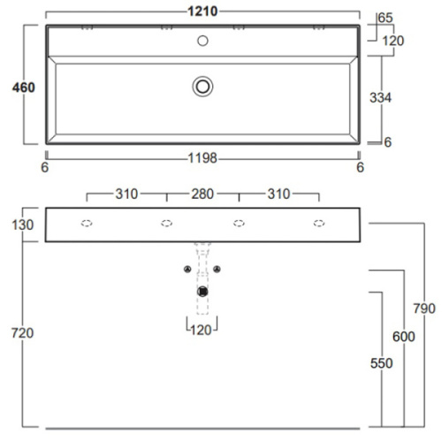 Раковина Simas Agile 121 см с 1 отверстием под смеситель AG121 bi*1