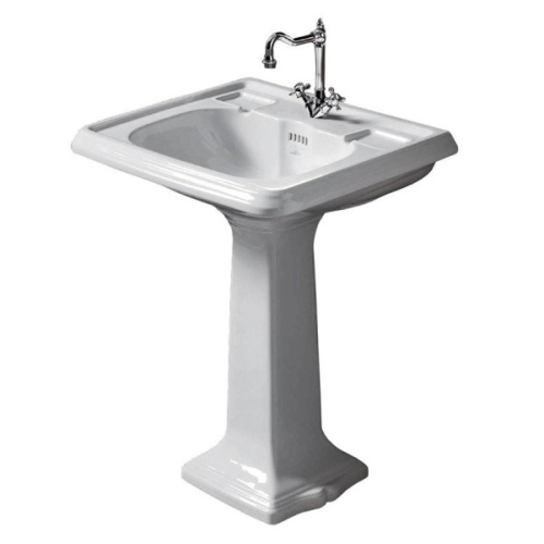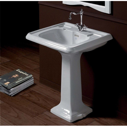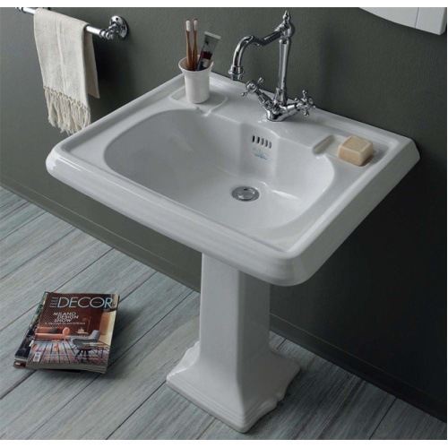 Прямоугольная раковина Simas Arcade AR844 устанавливается с помощью пьедестала. На бортике есть одно отверстие под смеситель. В комплект входит сифон, крепежные детали, кронштейны. Все использованные материалы имеют высокое качество.