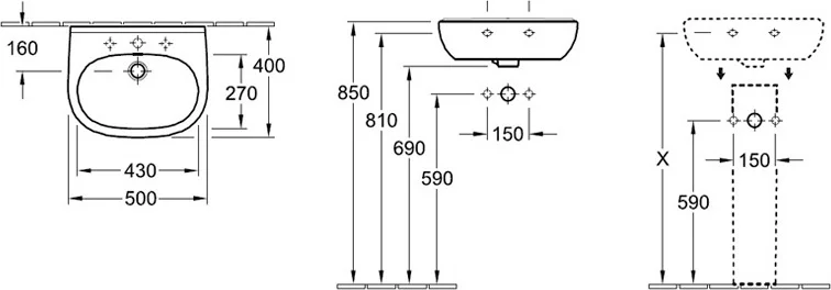 Раковина Villeroy & Boch O.novo 50 см без покрытия 53605001