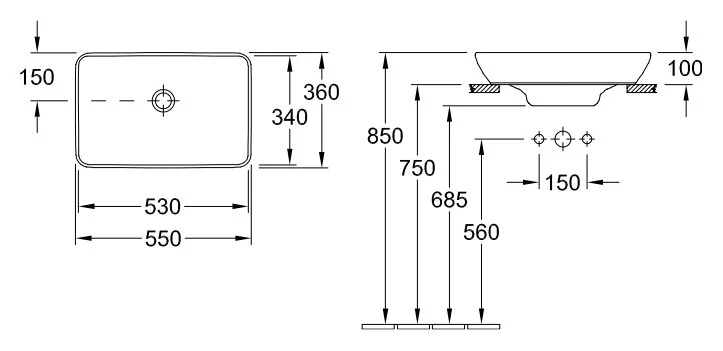 Раковина Villeroy & Boch Venticello 411355 55 см на столешницу