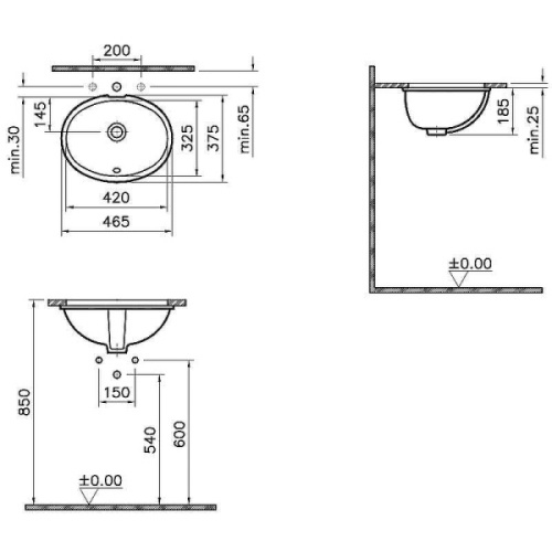 Раковина врезная VitrA Arkitekt 60 см встраиваемая снизу 6069B003-0012