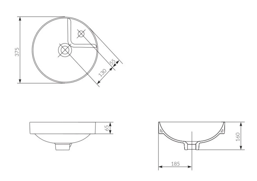 • основание в виде сегмента круга и 1 отверстие под смеситель;