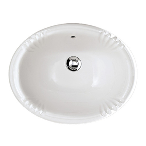 Встраиваемая раковина имеет овальную форму и выпускается в размере 49х39х21 см. Модель производится из белого санфаянса в современном дизайне. Глянцевая поверхность изделия легко моется, не теряет блеска, не растрескивается, поэтому пользуется популярностью у покупателей. Надежность гарантируется.