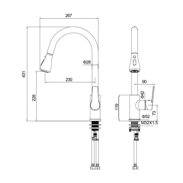 | Тип излива | С поворотным изливом, C выдвижным изливом (лейкой) |