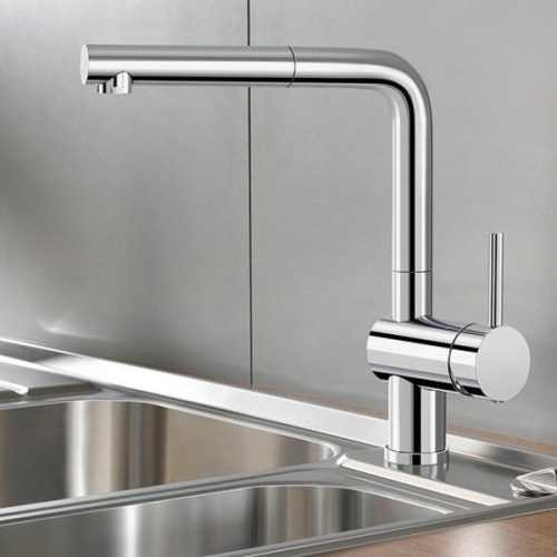 Смеситель для кухонной мойки Blanco Linus-S предлагается в двух модификациях, отличающихся расположением рычага управления – с правой или левой стороны. Расцветки модели разнообразны: